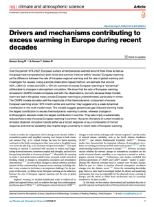 Over the period 1979-2022, European surface air temperatures warmed around three times as fast as the global mean temperatures in both winter and summer. Here we define “excess” European warming as the difference between the rate of European regional warming and the rate of global warming and investigate the causes. Using a simple observation-based method, we estimate that around 40% ± 39% (in winter) and 29% ± 10% (in summer) of excess European warming is “dynamical” – attributable to changes in atmospheric circulation. We show that the rate of European warming simulated in CMIP6 models compares well with the observations, but only because these models warm too fast in the global mean; excess European warming is underestimated, particularly in winter. The CMIP6 models simulate well the magnitude of the thermodynamic component of excess European warming since 1979 in both winter and summer, they suggest only a weak dynamical contribution in the multi-model mean. The models suggest greenhouse gas-induced warming made the largest contribution to excess thermodynamic warming in winter, whereas changes in anthropogenic aerosols made the largest contribution in summer. They also imply a substantially reduced future rate of excess European warming in summer. However, the failure of current models to simulate observed circulation trends (either as a forced response or as a combination of forced response and internal variability) also implies large uncertainty in future rates of European warming.